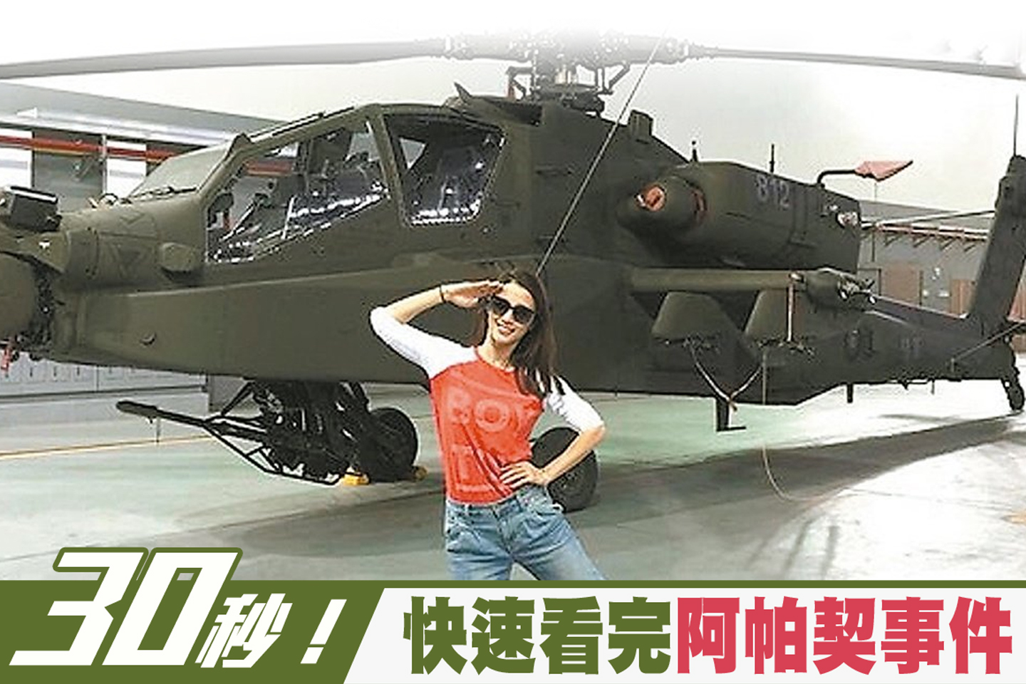 【新唐人亞太台 2015 年 08 月 22 日訊】引發軒然大波的阿帕契事件,起因於藝人李倩蓉在臉書貼出阿帕契照片,遭網友圍剿,連帶造成21名將、校級軍官被懲處。帶您用30秒,快速回顧阿帕契案始末。