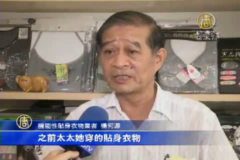 【新唐人亞太台 2015 年 08 月 22 日訊】溫室效應所帶來的全球暖化現象,氣溫是逐年攀升,避免汗水與肌膚長時間接觸,滋生細菌產生異味,甚至造成皮膚過敏,貼身衣物是否有排汗、透氣功能,就顯得格外重要。帶您來看,專門研發貼身衣物纖維的楊何源,如何為了維護家中太座的健康,成功研發專利紗線機能性貼身衣物。