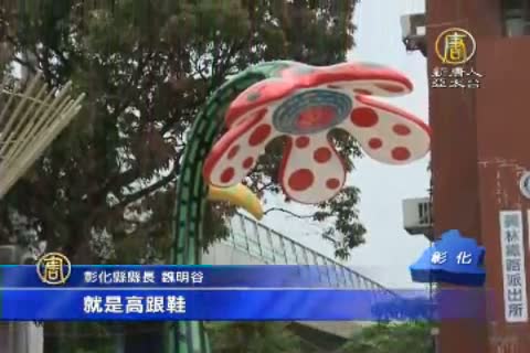 彰化縣長 魏明谷:「今天作品,她就是高跟鞋,插了一朵花,就是一個,青春花樣的少女,踩著高跟鞋,來到我們員林火車站,要去見她的男朋友。」