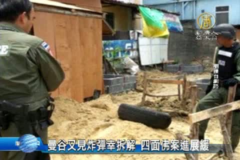 【新唐人亞太台 2015 年 08 月 24 日訊】泰國曼谷一星期前才發生大爆炸,造成20人死亡,今天(24日)泰國警方在曼谷一條主要幹道旁的建築工人屋內,再度發現並拆解一枚炸彈,後來證實是一顆未爆的手榴彈,但警方估計與上週一的爆炸案沒有關係,至於曼谷爆炸案嫌犯至今還沒有落網,泰國警方說,是因為路口的監視器大多壞掉了,影響辦案進度。