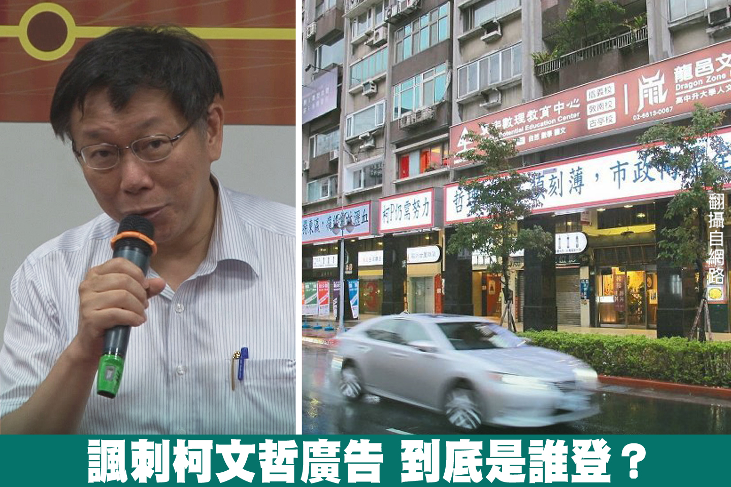 諷刺柯文哲的廣告是誰刊登的,附近的店家都表示不清楚,出租此廣告招牌的業者,也只說承租廣告的是一群有幽默感的匿名者,不過有人認為廣告太文謅謅,看不懂,目前,這個廣告也已經撤除。