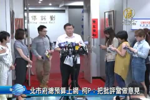 【新唐人亞太台 2015 年 08 月 26 日訊】台北市政府公布民國105年總預算案,將送議會審議,台北市長柯文哲表示,他已交代主計處將預算案全部上網,歡迎民眾先來審。