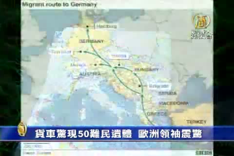 【新唐人亞太台 2015 年 08 月 28 日訊】奧地利靠近匈牙利邊境,昨天發現一輛停在路邊的大貨車,大約有50名偷渡客被悶死在車內;由於歐州各國當天正在出席巴爾幹峰會討論難民處置問題,傳出這個不幸消息,震驚與會各界。
