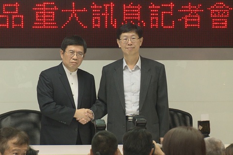 【新唐人亞太台 2015 年 08 月 28 日訊】鴻海與矽品今天(8/28)下午在證交所舉辦重大訊息記者會,雙方簽署合作意向書,將透過股權交換方式,成為策略聯盟合作伙伴,未來將在技術及業務上協同合作,提供客戶最佳整合服務方案。