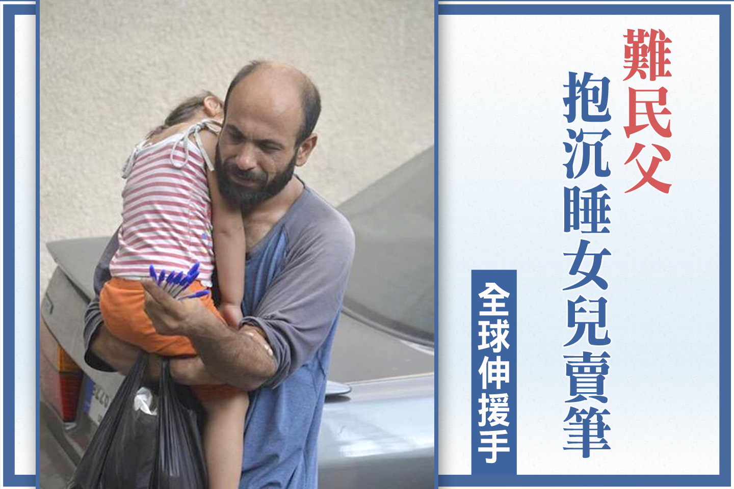 【新唐人亞太台 2015 年 08 月 29 日訊】繼續帶您看到,網路近期流傳1名中年男子,抱著在肩膀上沉睡的女孩,神情悲戚,在街頭賣原子筆的照片,讓超過百萬歐美網友,在網上尋找這名男子,希望伸出援手。短短3小時內,湧入約49.3萬元台幣的善款,要來協助這名難民展開新生活。