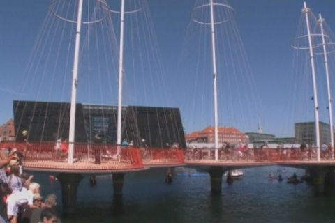 【新唐人亞太台 2015 年 08 月 30 日訊】橋都是長條形的嗎?8月22日星期六,幾千名的民眾參加了丹麥首都哥本哈根(Copenhagen)新地標:五座交連的圓圈橋(the Circle Bridge)的開幕典禮。
