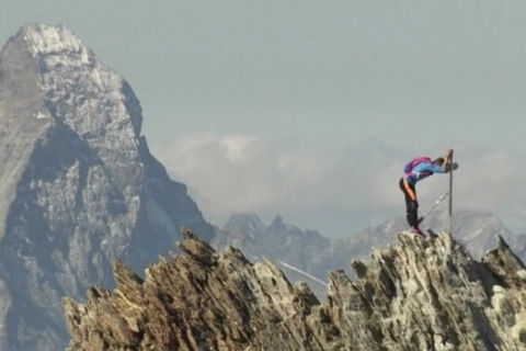 多姆峰是瑞士最高的山峰之一,一般的登山者單單攀爬這一座山就可能會花上2天的時間。然而,斯坦德爾卻如履平地般的在懸崖峭壁上健步如飛。