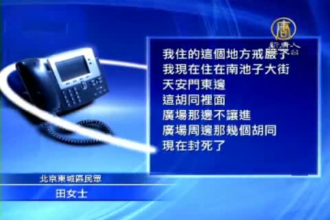 北京東城區民眾田女士:「但是你要去天安門廣場,你要去金水橋一定要通過安檢,身份證擱那兒,才可以進去,我住的這個地方戒嚴了,我現在住在南池子大街,天安門東邊這條胡同裡面,廣場那邊不讓進,廣場周邊那幾個胡同封死了。」