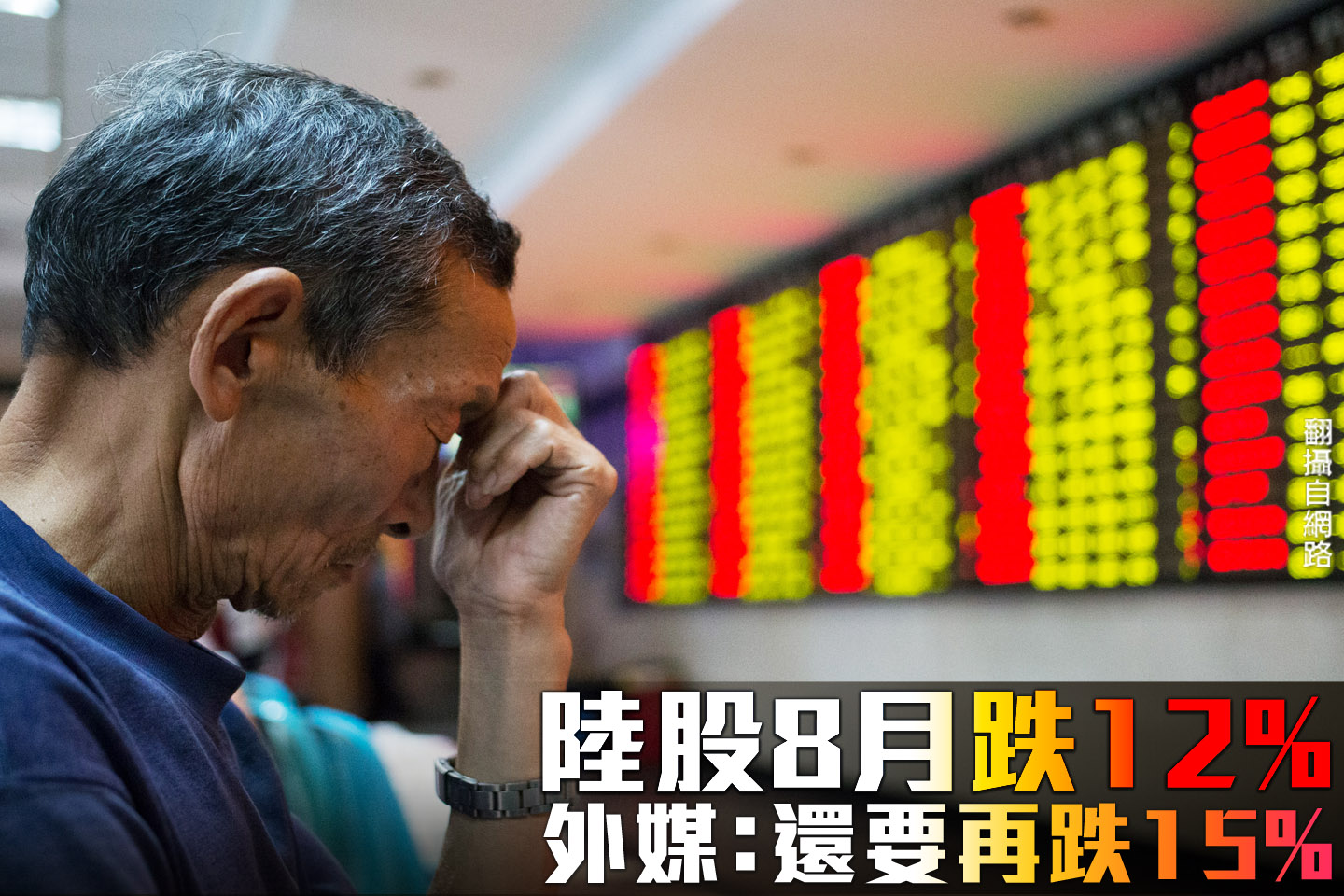 中國股災過去了嗎?可能言之尚早,上證參考,今天開盤不到10分鐘,指數跌幅超過2%,一度跌破3200點大關,收盤勉強收在3358點。而累計陸股8月份跌掉12.49%,接近7月跌幅的14%,尤其下跌態勢,似乎還沒有完。