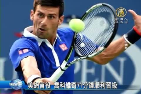 【新唐人亞太台 2015 年 09 月 01 日訊】大會第一種子、世界球王喬科維奇,今天只用了71分鐘,就贏得美國網球公開賽 第一輪,順利晉級。賽前被看好有奪冠機會的喬科維奇,覺得自己目前狀態相當不錯,在被問到可能的對手,喬科維奇認為,瑞士選手費德勒,是他認為最強的對手。