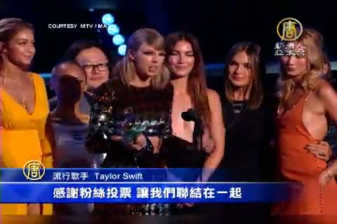 【新唐人亞太台 2015 年 09 月 01 日訊】美國MTV音樂錄影帶大獎 週日在洛杉磯微軟劇院 舉行了頒獎典禮,小歌后泰勒絲成為當晚的大贏家。