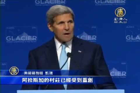 美國國務卿 凱瑞:「(氣候變遷)已經成為影響數百萬人口的巨大挑戰,阿拉斯加的村莊已經受到重創,一些人不得不離開家園。」