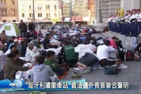 【新唐人亞太台 2015 年 09 月 03 日訊】匈牙利布達佩斯火車站外,連續第二天有非法移民及難民示威,抗議匈牙當局禁止他們離境,一度與警方發生衝突。數以千計的移民聚集在火車站外大呼口號。抗議匈牙利連續兩天關閉車站,禁止他們搭上前往德國及其他較富裕歐盟國家的火車。義大利、法國及德國三國外長,週三簽署聯合聲明,要求歐盟 重新審視 提供庇護的規定,並且要求各國要平均收容難民。