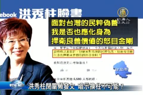 【新唐人亞太台 2015 年 09 月 05 日訊】究竟洪秀柱,是否將繼續參選?成為洪秀柱宣布暫停行程後,關注的焦點。不過,儘管兩天沒有露臉,但洪秀柱透過臉書持續發文,昨晚(4日)她在臉書上表示,自己應該做個觀世音,但面對台灣的民粹偽善,她是否應該化身為怒目金剛?前立委紀國棟說,這段話擺明告訴大家,洪秀柱不會退選。