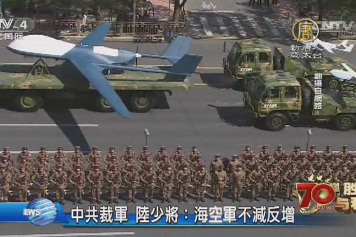 【新唐人亞太台 2015 年 09 月 05 日訊】日前,中國國家主席習近平在九三閱兵上宣布,將在2017年之前裁軍30萬。共軍退役少將表示,裁撤的應該是非戰鬥人員,但海軍空軍不僅不會裁,整體規模還可能倍增。