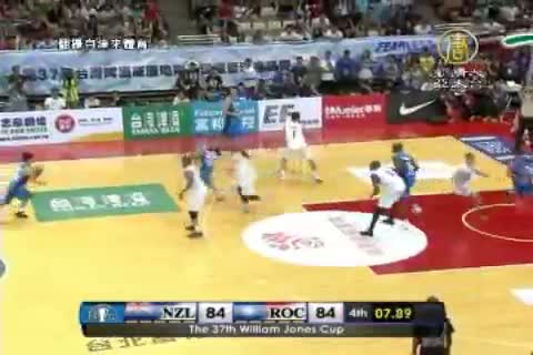 【新唐人亞太台 2015 年 09 月 06 日訊】瓊斯盃中華藍隊昨天(9/5)面對有4名美籍洋將助陣的紐西蘭隊,在滿場球迷前打出逆轉秀。從下半場落後15分,在4節急起直追,劉錚開局連砍8 分,到終場前17秒洪至善投進關鍵3分,都是贏球關鍵。今天晚上瓊斯盃壓軸最終戰,中華隊迎戰南韓,目前比賽進行到第3節,比數是44: 45,中華藍暫時落後。大批球 迷進場為中華隊加油,希望中華隊能拿下這場比賽,奪得第二名,為今年的瓊斯盃畫下完美句點。