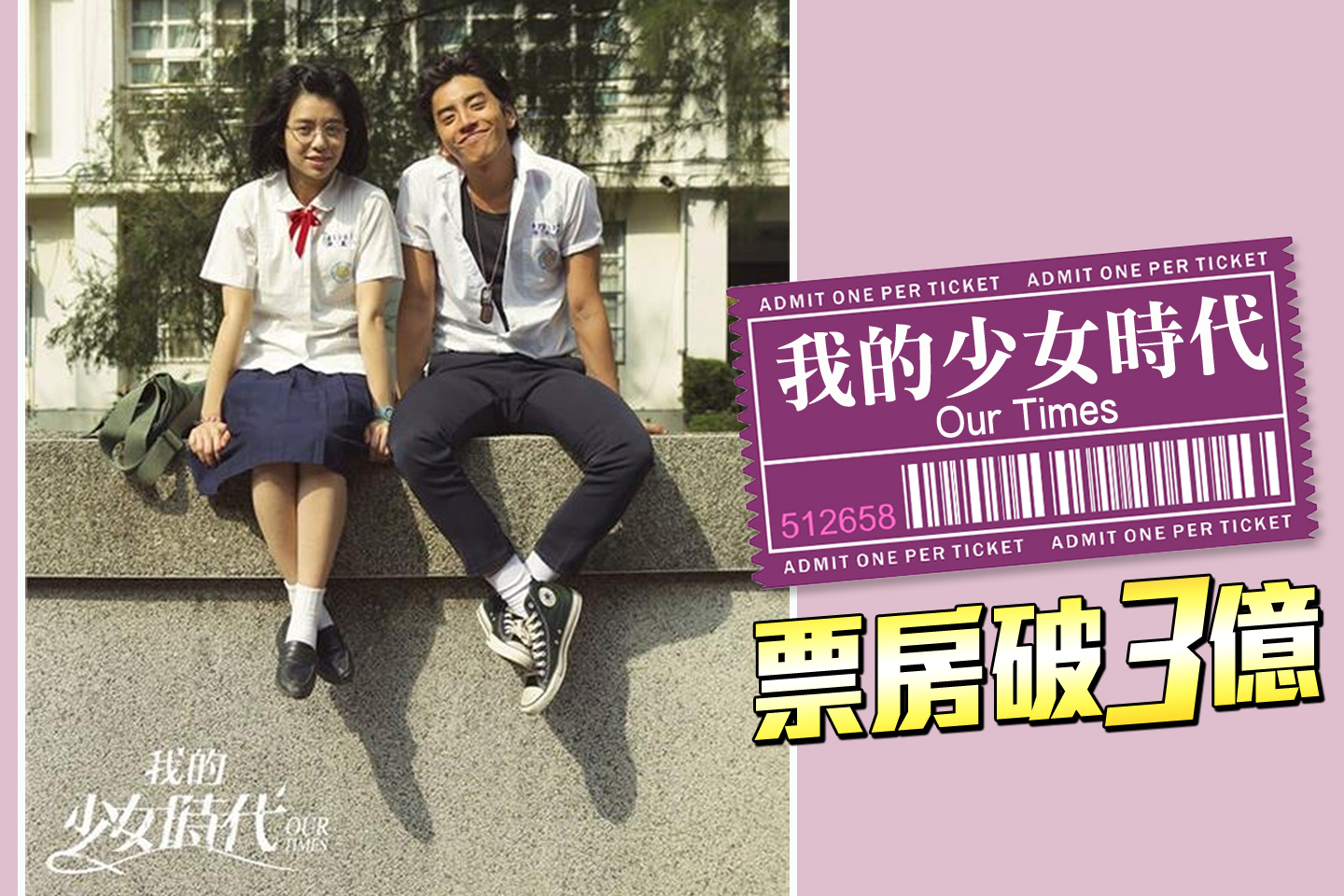電影《我的少女時代》,上映24天,票房突破3億大關,從台灣華語票房紀錄榜來看,青春校園電影《那些年 我們一起追的女孩》以4.1億,排名第四而《我的少女時代》擠進第九名。