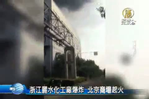 【新唐人亞太台 2015 年 09 月 08 日訊】鏡頭轉到中國,中國再度傳出化工廠爆炸事件,昨天(7日)下午浙江麗水市的南明化工廠發生爆炸,現場竄起大約100公尺高的濃濃黑煙,當地消防部門表示,現場燃燒的化學物質是甲醇。另外,北京市大興區的星城商廈昨天下午也發生火災,火勢一度相當猛烈,燒紅半邊樓,而這兩起火災的傷亡情況,到目前都還沒有公布。