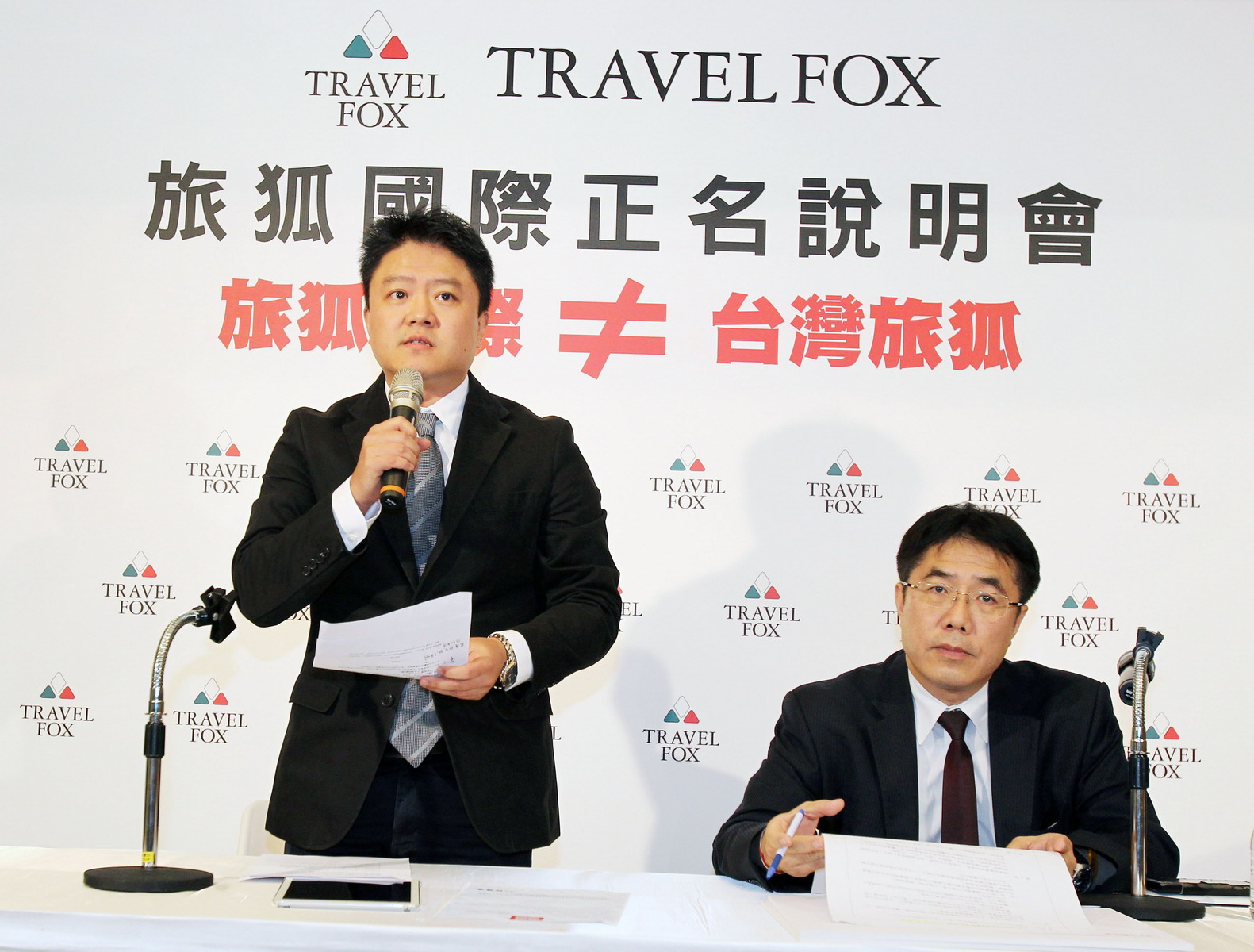 【旅狐國際 TRAVEL FOX 說明會】 左起:旅狐國際總經理 陳正宏 先生,立法委員黃偉哲 先生。(旅狐國際提供)