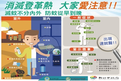 新北市衛生局指出,全國僅9月9日單天就新增581例本土登革熱案例,創下入夏以來的單日新高。呼籲民眾如至登革熱流行地區旅遊,應掌握當地疫情並做好防蚊措施,返家後自主健康監測,如出現發燒、頭痛、肌肉酸痛、後眼窩痛、關節痛或皮膚紅疹等登革熱疑似症狀,請儘速就醫並告知旅遊史及接觸史,以利及時診斷及早治療。