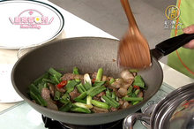 很多人愛鹹豬肉的特殊香味,來賓徐秀景將大蒜、辣椒、鹹豬肉切斜薄片,酥酥香香的口感,真的很好吃!