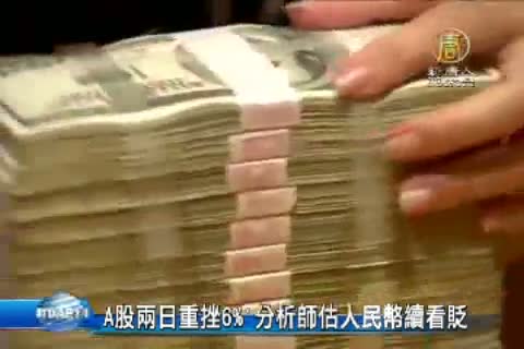 【新唐人亞太台 2015 年 09 月 16 日訊】美國聯準會決策會議升息前夕,中國A股一連兩天累計跌6.2%,凸顯市場的信心危機。分析師預期,除了反映市場並不看好中國經濟,人民幣未來,還會持續貶值。