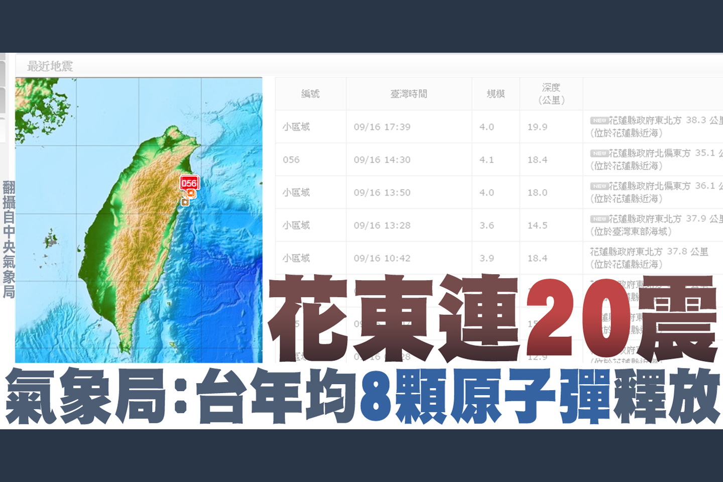 花東連20震 氣象局:台年均8顆原子彈釋放