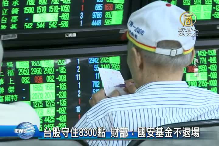 【新唐人亞太台 2015 年 09 月 21 日訊】財經消息,台股今天盤中一度跌破8300點整數關卡,收盤下跌155點,收在8307點,外界關切國安基金動向,財政部次長吳當傑重申,國安基金10月中之前,不會退場。金管會宣布解除平盤下不能放空的措施,有助台股量能、但指數震盪可能加劇;而央行本週四是否宣布降息,也將影響金融股走勢。