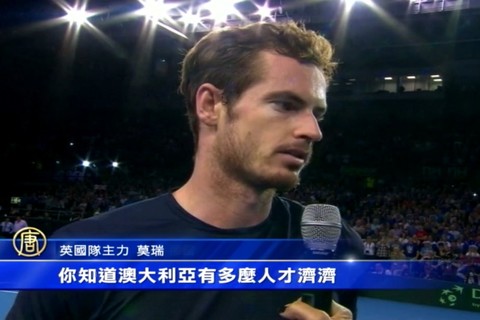 【新唐人亞太台 2015 年 09 月 21 日訊】2015戴維斯盃男子網球 隊際賽,英國隊主力「莫瑞」在第四場的單打比賽中,輕取澳洲的 托米奇 ,取得決賽資格。這是英國隊,時隔37年再次打入戴維斯盃決賽。將在11月下旬迎戰比利時隊。