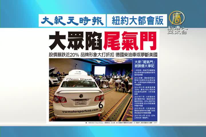 接著看到大紀元時報紐約大都會版報導:大眾陷尾氣門 股價暴跌近20% 品牌形象大打折扣 德國柴油車或夢斷美國