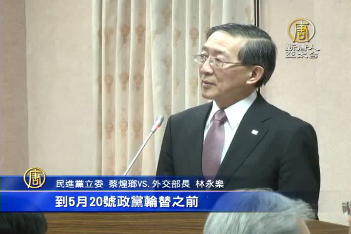 【新唐人亞太台 2015 年 09 月 23 日訊】2016台灣大選,外界預期台灣將發生再次政黨輪替,在選情對民進黨有利的情況下,中共會不會挖腳台灣邦交國,以斷交逼迫台灣選舉?對此,外交部長林永樂今天(23日)在答詢時說,目前沒有看到有這樣的跡象。