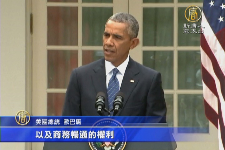 美國總統 歐巴馬:「第五,我們在人權問題上,像從前一樣進行了坦誠的討論,我再次重申了美國對於人權和民眾的基本自由的不變支持,包括集會和表達自由,言論和宗教自由。」