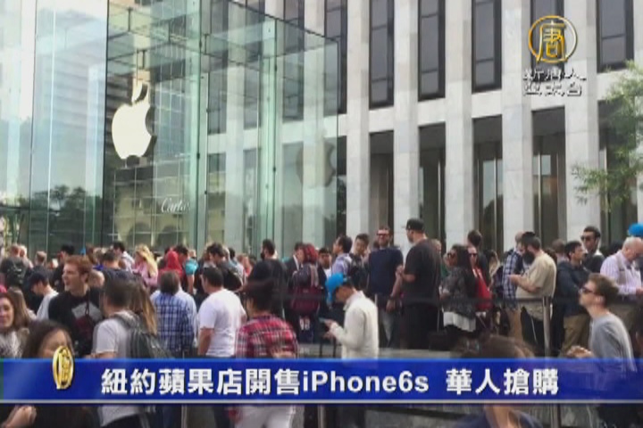 記者:「在蘋果iPhone 6S在紐約開賣的第一天,大批的華人民眾在門前排隊搶購。」