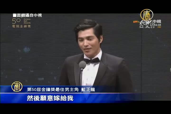 頒獎人 林依晨:「第50屆金鐘獎戲劇節目男主角,得獎的是,藍正龍,妹妹。」