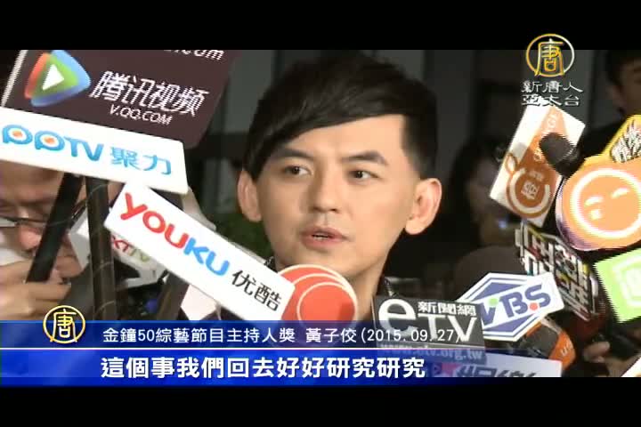【新唐人亞太台 2015 年 09 月 27 日訊】昨天,金鐘50頒獎典禮,綜藝節目主持人獎得主黃子佼,在致詞時大方放閃,向女朋友孟耿如求婚。佼佼後來在慶功宴後受訪時說,兩人回去還要聊一聊。孟耿如也在FB上說,需要冷靜一下。