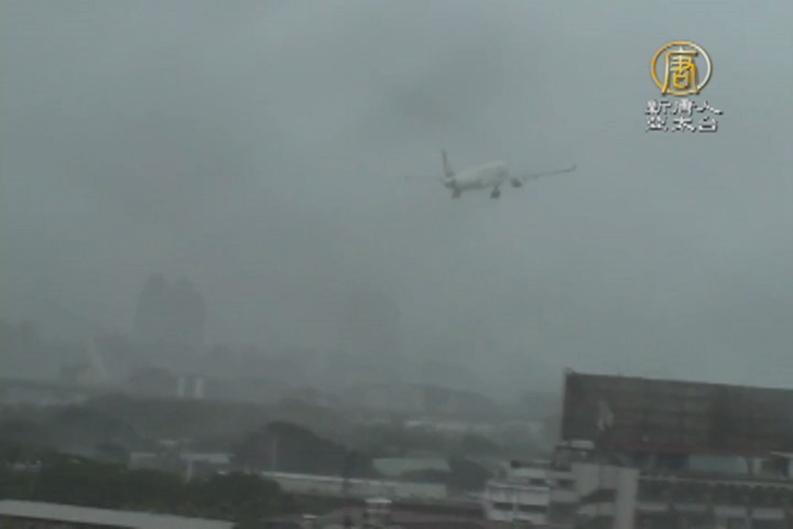【新唐人亞太台 2015 年 09 月 28 日訊】中秋節收假日,遇上強颱杜鵑,今天下午3點41分,在松山機場附近,一架客機,在昏暗天色與風雨中搖晃,從畫面看到,機身極力維持平衡,但周遭樹木已經劇烈搖晃,可見風雨威力驚人。據了解,這架班機是長榮航空從日本東京羽田機場起飛,原本要降落台北松山機場,但因為風勢實在太大,最後飛機轉降香港。另外,民航局指出,今天下午4點之前,國內航線已經已經有超過306次班機取消,上萬名旅客受到延誤,而桃園國際機場表示,明天,29號要搭機出國的旅客,務必要再與航空公司確認行程 。