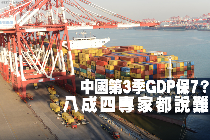 中國媒體調查顯示,84%經濟學家預期,中國第3季國內生產毛額(GDP)年增率無法「保7」,47%預期第3季GDP季增率也會下滑至1.5%以下。