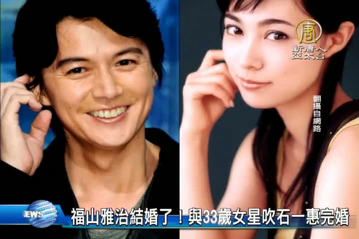 【新唐人亞太台 2015 年 09 月 28 日訊】日本不老男神福山雅治今天(28日)下午閃電宣布結婚,與交往多年的日本女星吹石一惠,完成登記,正式成為夫妻。福山雅治在官網發布婚訊,福山透露,他和 吹石一惠 幾年前從朋友關係晉升為戀人,正式展開交往。福山透過經紀公司表示,兩個人不知不覺 已經成為彼此不可或缺的存在,雖然在感情世界中還不夠成熟,仍想攜手努力共創幸福家庭,希望獲得粉絲及大家的祝福。