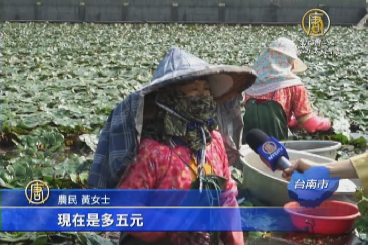 【新唐人亞太台 2015 年 09 月 28 日訊】每年九月是台南官田的菱角採收季節,一大清早就有農民穿著防水衣,泡在菱角田裏採收,而今年因為七八月份雨水多,造成菱角產量減少,價格也跟著上漲了一些。