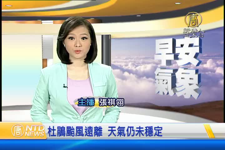 【新唐人亞太台 2015 年 09 月 30 日訊】歡迎您收看9月30日的早安新唐人,我是張祺翎。先來帶您關心今天的天氣情況。杜鵑颱風遠離,不過天氣仍然是不太穩定。南部和東半部地區會有局部短暫陣雨,中部以北則是多雲到晴的天氣,中午過後可能會有局部的短暫雷陣雨或大雨氣溫部分,北部地區約25到33度,中南部地區則是25到34度。提醒大家,未來幾天天氣仍然不穩定,要多加留意。帶您一起來看到國際媒體重要訊息。