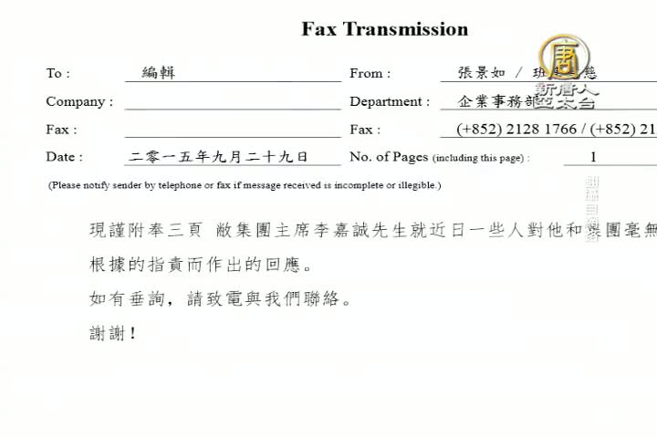 【新唐人亞太台 2015 年 09 月 30 日訊】再來看到,香港首富李嘉誠從中國撤資,卻引來中共官媒輪番批評,還叫囂「別讓李嘉誠跑了」;李嘉誠本人在沉默14天後,昨天,破天荒以3頁文字回應,在長實地產公司的官網上,刊出李嘉誠的個人聲明稱:「最近一些人對我本人和集團作出毫無根據的指責」「 但文章的文理扭曲,語調令人不寒而慄,深感遺憾。」,李嘉誠近期將旗下的最後一家上市公司─電能實業,重組下市,也宣告完成集團產業,全數撤遷中國。