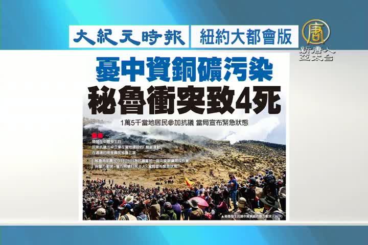 接著看到大紀元時報紐約大都會版報導:憂中資銅礦污染 祕魯爆發衝突導致4人死亡