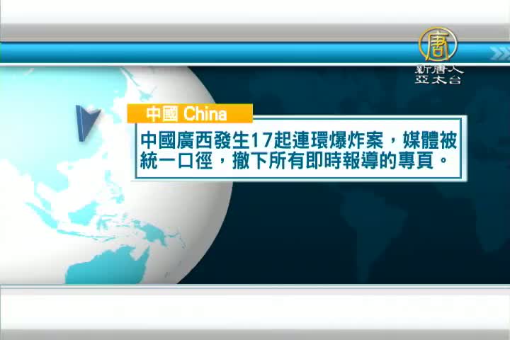 中國廣西發生17起連環爆炸案,媒體被統一口徑,撤下所有即時報導的專頁。