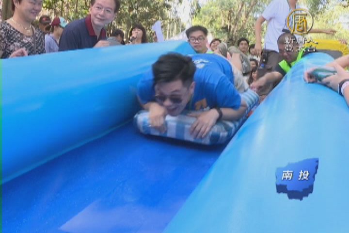 【新唐人亞太台 2015 年 10 月 04 日訊】能想像水上的滑水刺激,竟然能在大馬路上實現嗎?南投近日舉辦陸上滑水活動,在集集的綠色隧道上,鋪設長達百米的滑水道,要讓民眾體驗在陸上滑水的刺激感。