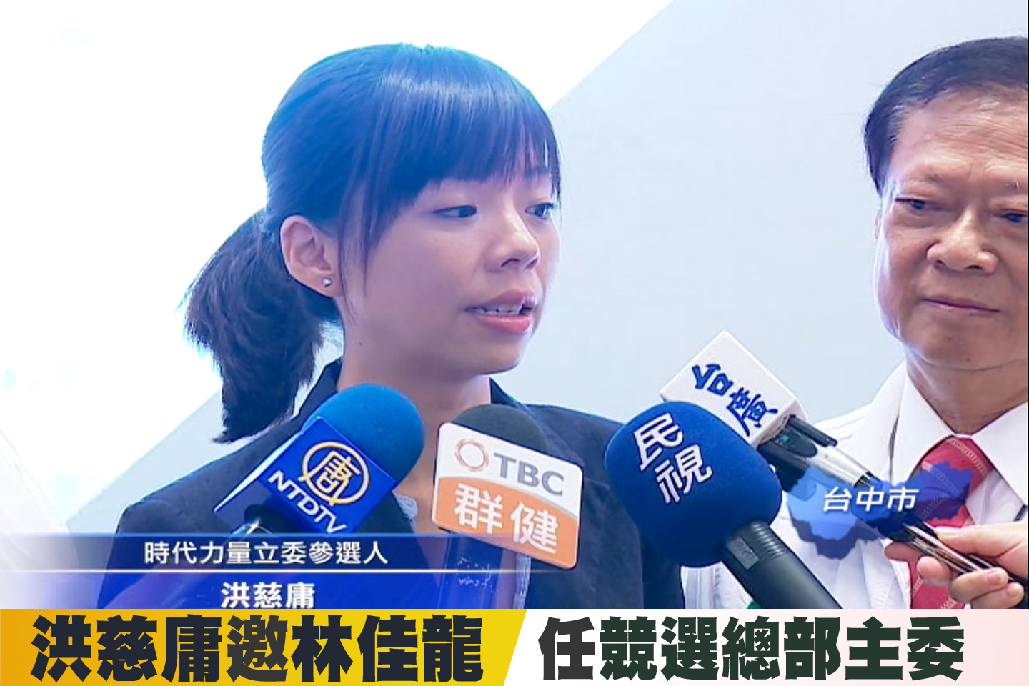 2015-10-09 21:12:59台灣大選第三勢力崛起,台中市長林佳龍今天下午,為時代力量立委參選人洪慈庸站台,並宣佈擔任洪慈庸競選總部主委,動員基層人員的支持,把洪慈庸送進立法院。