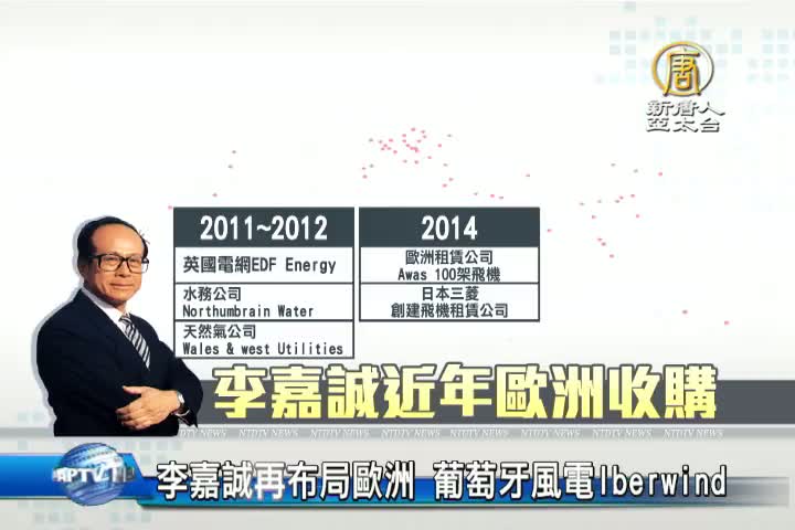 【新唐人亞太台 2015 年 10 月 05 日訊】再來看到,香港首富李嘉誠旗下的長江基建合併電能實業之後,隨即就有大動作。這個月3號,兩家公司組成的合資公司,以2.88億歐元,收購葡萄牙風力發電公司,為李嘉誠「脫亞入歐」的布局,再下一城。