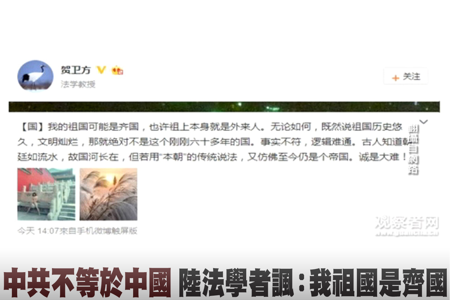 中共不等於中國 陸法學者諷:我祖國是齊國