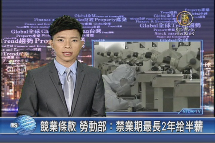 【新唐人亞太台 2015 年 10 月 07 日訊】好,因應挖角現況,勞動部訂定「競業禁止條款」參考原則,從即日起生效,規定雇主與勞工簽訂的競業禁止期間最長2年,契約中需要明訂補償金的標準,不能低於勞工離職時每個月平均薪水的一半,否則無效。另外,必須是受到法律保護的營業祕密或智慧財產權,加上員工的工作內容必須有接觸營業秘密或是優勢技術,才是競業禁止的對象。