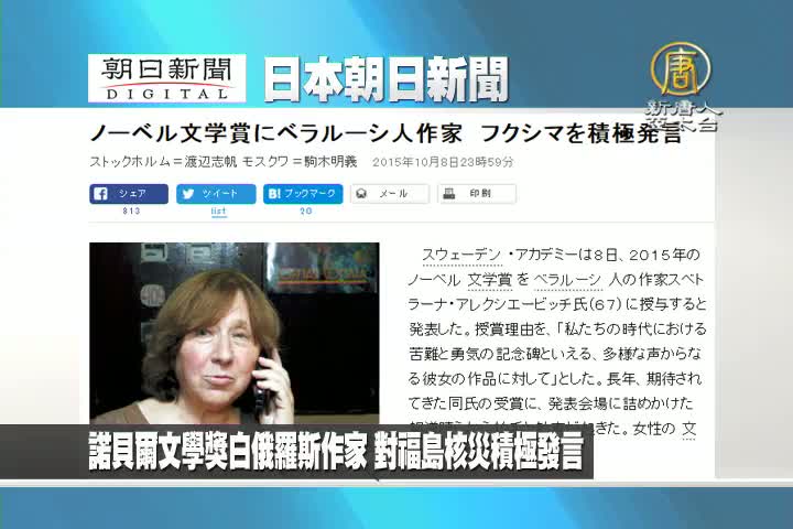 【新唐人亞太台 2015 年 10 月 09 日訊】來看到日本朝日新聞報導:諾貝爾文學獎白俄羅斯作家 對福島核災積極發言