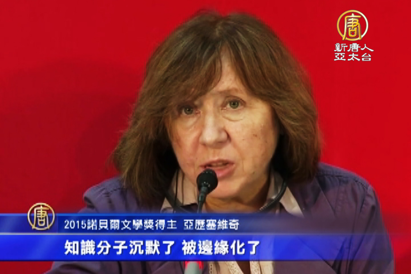【新唐人亞太台 2015 年 10 月 09 日訊】2015年諾貝爾文學獎8日在瑞典首都斯德哥爾摩 揭曉,由白俄羅斯記者、作家亞歷塞維奇獲得殊榮。